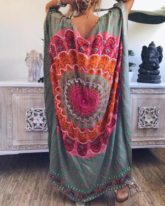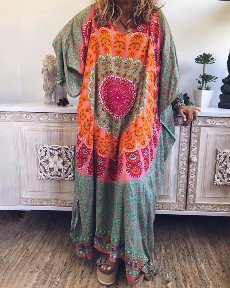 Be the first to review “【Ship in 24 hours】Vintage Floral Print Batwing Sleeve Plus Size Maxi Dress”
